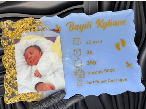 Immortalisez les premiers instants de votre bébé avec un cadre unique en résine, fait main avec amour.